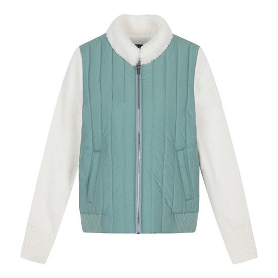 バイカラーのモコモコジップアップ。 カラー: ベージュ、ブラック、ミント サイズ: 000(S 001(M 002(L 素材: ポリエステル